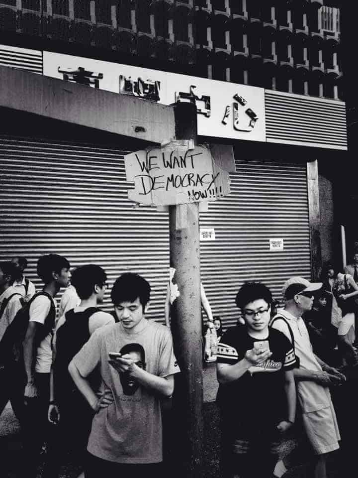 Tuhansia ihmisiä osoittaa mieltään demokratian puolesta Kiinan erityishallintoalue Hongkongin keskustassa. Protestit liittyvät Kiinan päätökseen, jonka mukaan seuraavissa Hongkongin ylimmän johtajan eli hallintojohtajan (engl. chief executive) vaaleissa ei sallita vapaata ehdokasasettelua, vaan ehdokkaiden tulee olla Pekingin keskusjohdon hyväksymiä. Osan Hongkongin keskustaa vallanneen Occupy Central -liikkeen tavoitteena on päätöksen kumoaminen ja maan nykyisen hallintojohtajan C.Y. Leungin ero. Mielenosoittajat vaativat yleistä äänioikeutta, demokratiaa ja Pekingiä jatkuvasti myötäilevän poliittisen johdon vaihtoa.