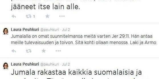 Peuhkurin pian lähetyksen jälkeen julkaisemat tviitit todistavat kuitenkin väkevästi siitä, että kristillisdemokraattien kapinaliike on vähintään yhtä voimakkaasti motivoitunut herätyskristillisyydestä kuin Räsäsen edustama linja. Peuhkuri kirjoitti Twitter-viesteissään muun muassa, että ”Puhkeaa se suuri herätys, jota on odotettu vuosikymmenten ajan! Nuoriso on tulenkantajana ja kulkee esitaistelijana molemmissa regimenteissä” ja kuinka ”Jumala on elävä ja kaikkivaltias ja voimallinen. Hänen tavoitteensa on yhdistää Suomen kanssa ja tehdä ryhtiliike, KD vain väline”.