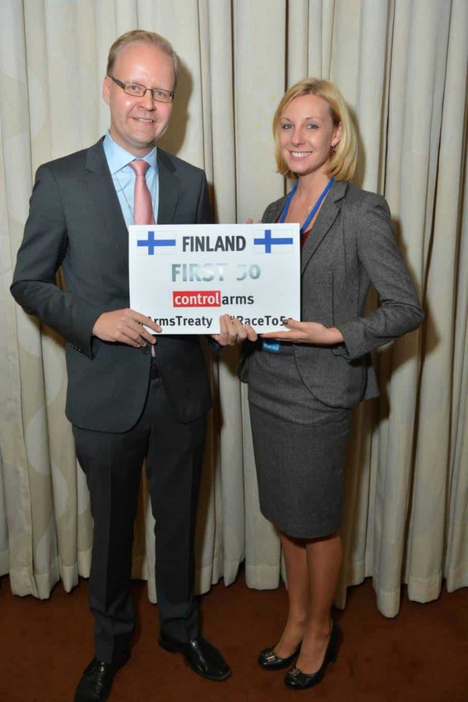 Esimerkiksi Suomi ajoi aktiivisesti neuvotteluita ensimmäisestä kansainvälisestä asekauppasopimuksesta (Arms Trade Treaty, ATT), liittyi siihen muiden Pohjoismaiden tavoin viime vuonna ensimmäisten joukossa ja on ilmoittanut päämääräkseen sopimuksen universaalistamisen.