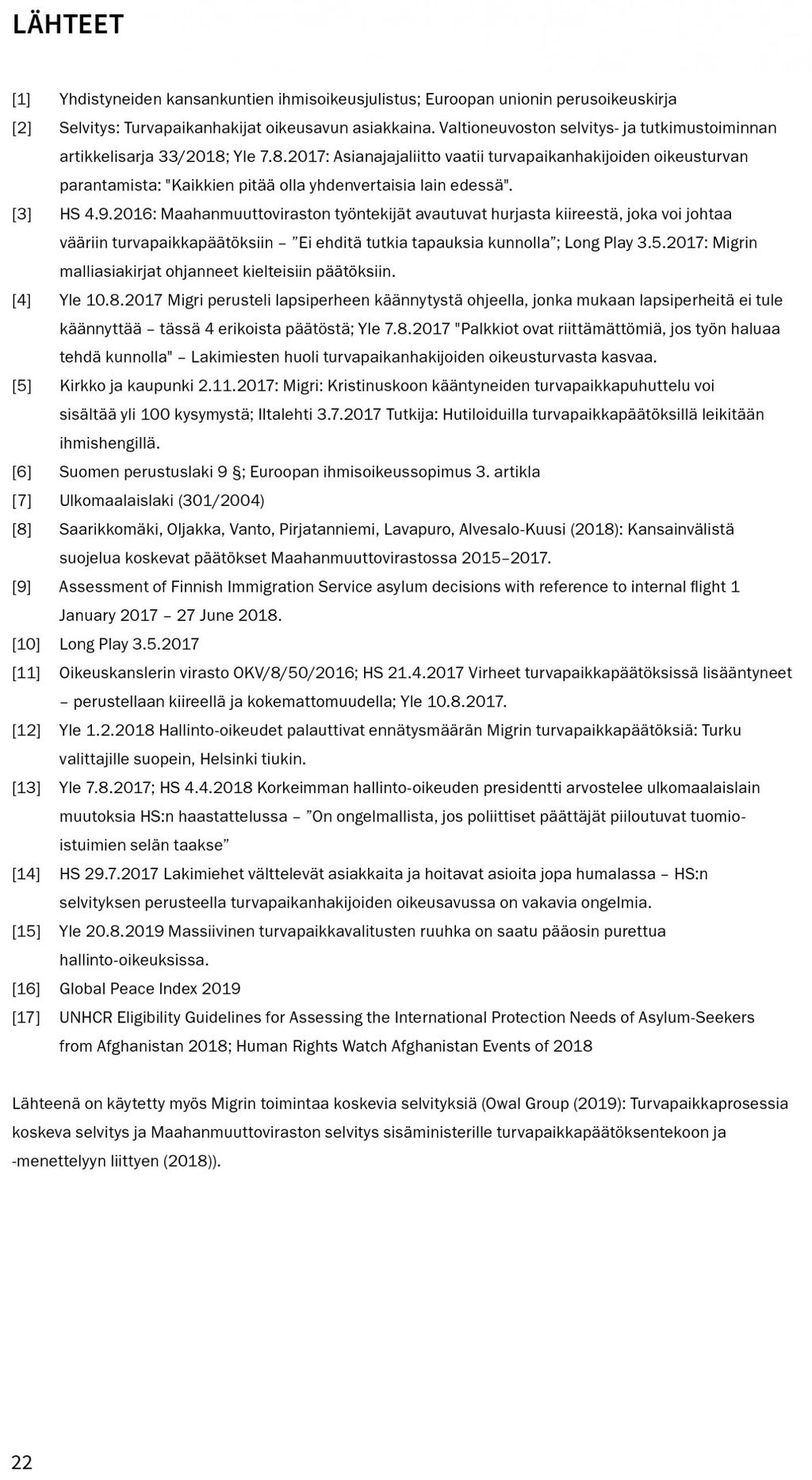 Turun yliopiston, Åbo Akademin & Yhdenvertaisuusvaltuutetun julkaiseman tutkimuksen mukaan turvapaikanhakijoiden oikeudellinen asema heikentyi vuoden 2015 jälkeen nimenomaan Maahanmuuttoviraston päätöksentekoon liittyvistä syistä. Migrin kansainvälistä suojelua koskevat ratkaisukäytännöt ja tulkinnat tiukentuivat ilman pakottavia oikeudellisia perusteita tai lainsäädännöllisiä muutoksia. Näin ei pitäisi tapahtua perus- ja ihmisoikeuslainsäädäntöön sidotussa turvapaikkamenettelyssä.