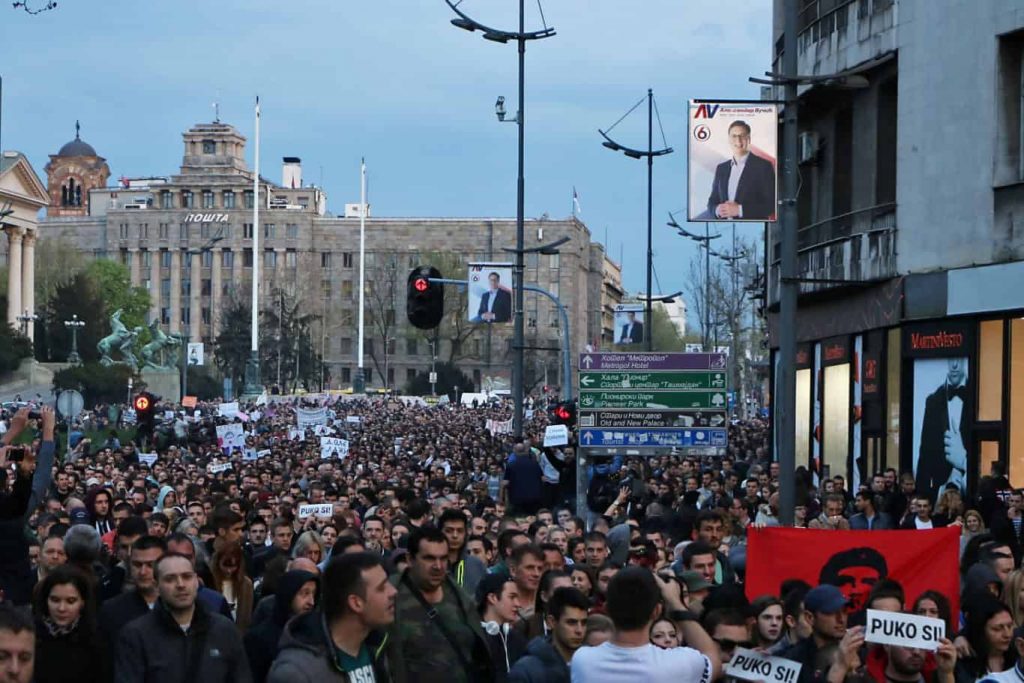 Heti vaalien jälkeisenä maanantaina Serbiassa alkoivat suuret, jo kuukauden kestäneet, protestit. Mielenosoittajien ydinjoukko koostuu nuorista ja opiskelijoista, mutta viikkojen mittaan joukkoon on liittynyt myös eläkeläisiä, työväestöä sekä oppositiopuolueiden edustajia.