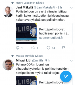 Niputtaminen on tyypillistä populistiselle retoriikalle. Ranskassa Marine Le Pen on pitänyt tapanaan niputtaa oikeisto ja vasemmisto yhteen. Samoin tekee Saksan AfD, joka jatkaa puhetta ”systeemipuolueista”. Sama retoriikka on kelvannut myös perussuomalaisten edelliselle johtajalle Timo Soinille, joka nimitti Helsingin Sanomia ”systeemin oksennukseksi”.
