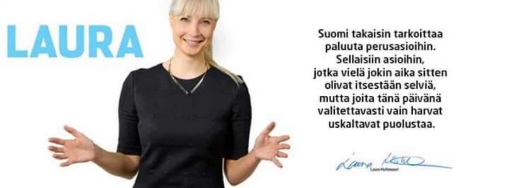 ”Suomi takaisin tarkoittaa paluuta perusasioihin. Sellaisiin asioihin, jotka vielä jokin aika sitten olivat itsestään selviä, mutta joita tänä päivänä valitettavasti vain harvat uskaltavat puolustaa.”