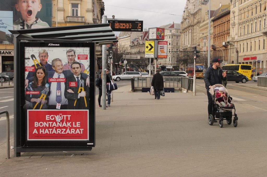 Helmikuun puolivälissä Budapestin kaduille ja bussipysäkeille ilmestyivät hallituksen uusimmat propagandajulisteet. Kuvan keskelle on kömpelösti photoshopattu ikääntynyt, hymyilevä amerikkalais-unkarilainen miljonääri ja filantrooppi, George Soros.